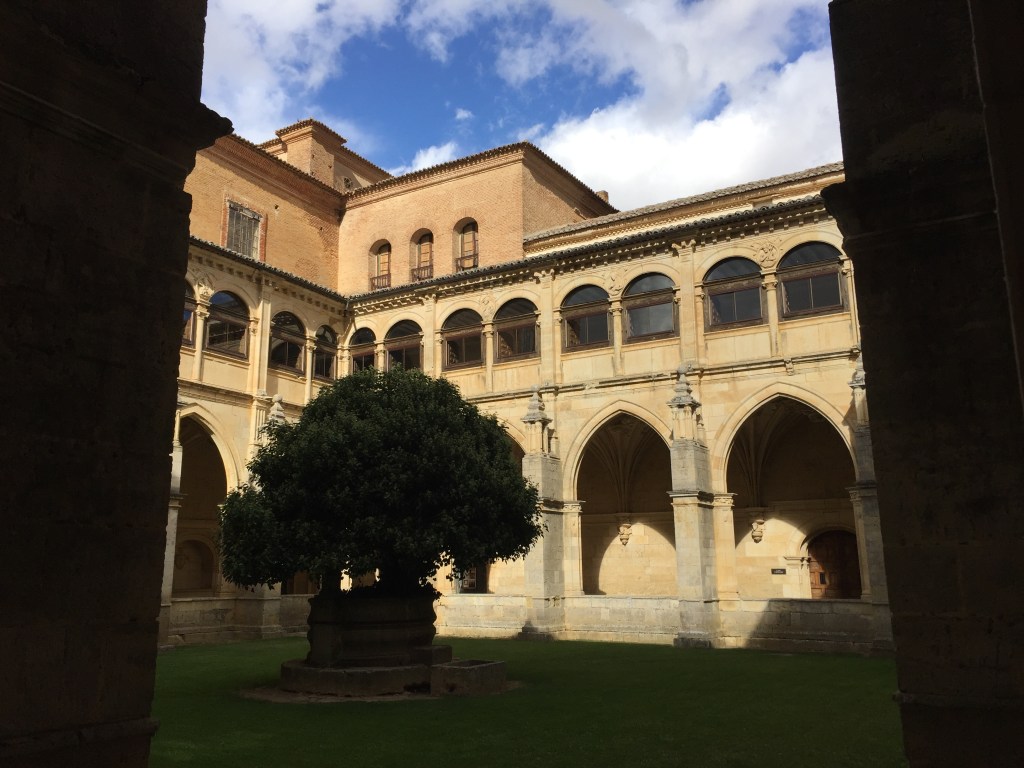 So, ich könnte noch so viel erzählen!! Von den Menschen, die ich neu kennengelernt habe und die auch ein – großes! – Geschenk sind, dem guten Essen, das wir hier genießen, von kleinen und großen Erlebnissen – innen wie außen, von dem wunderschönen Kloster San Zoilo, das seit 15 Jahren ein Hotel ist und wo ich mir heute Nacht mit Katharina ein Zimmer geteilt habe (Luxus pur!!) und in dessen Kreuzgang ich jetzt sitze und dies hier schreibe. Aber! Ich muss bis 12 Uhr das Zimmer räumen und habe dann die längste Strecke des Camino vor mir – 18 km bis zum nächsten Ort. Und alle anderen sind schon weg. Deshalb schließe ich jetzt hier an dieser Stelle, melde mich aber wieder, wenn ihr mögt 🙂