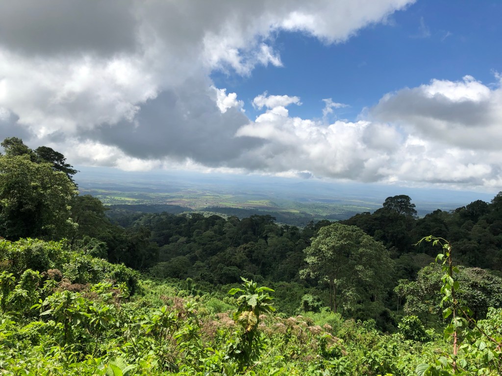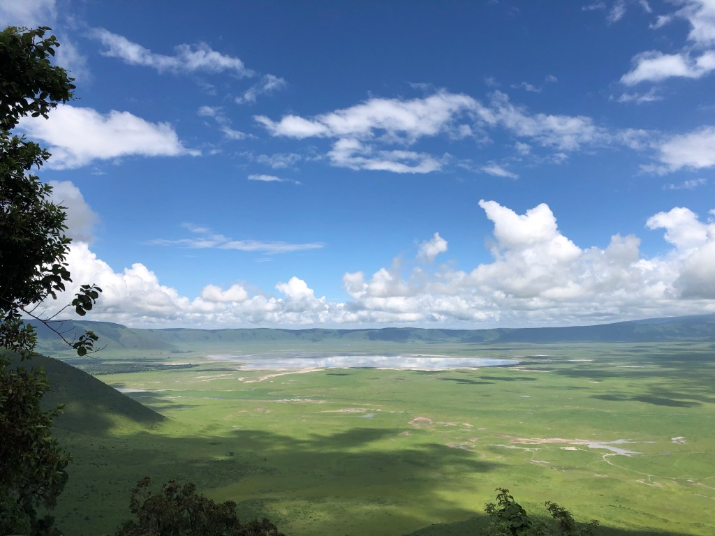Bevor es zum Ngorongoro Nationalpark geht, fahren wir noch in ein nahe gelegenes Café zum Frühstücken. Wieder gibt es Omelette, diesmal spanisch (mit Gemüse), und Chapati. Eine weitere Stunde später (!) und in gespannter Vorfreude steigen wir wieder in den Jeep, nur Johnson nicht, der in Karatu bleibt (angesichts des Platzmangels im Auto sind wir darüber nicht ganz traurig).