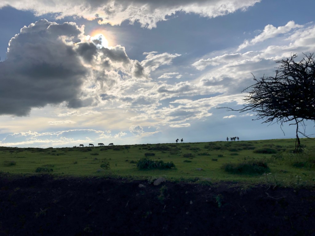 Wir lassen den Krater hinter uns und fahren in rasanterem Tempo in die Hochland-Savanne. Das Dach des Jeeps ist inzwischen geöffnet und es ist ein Vergnügen, Wind und Sonne zu spüren. Auch wenn ich aufpassen muss, dass mich gut festhalte. John hat beileibe keinen zimperlichen Fahrstil!