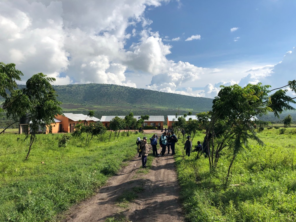 Nun! Gegen Mittag geht es endlich zur Schule. Wir fahren mit Mr. Barakas Familienvan und brauchen gute 8 Minuten, bis wir von der Hauptstraße auf einen Weg (unbefestigt wie übrigens alle Straßen hier) abbiegen, der herunter zum Schulgelände führt.