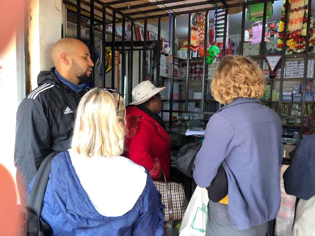 Wir starten um 10 Uhr und fahren mit Juliana und einigen Kindern, darunter Zenati, zusammen mit dem Schoolbus erst zur Schule, wo wir die Kinder absetzen, und dann weiter nach Wasso, um Kopien von unseren Reisepässen machen zu lassen, die Baraka für unsere Anmeldung bei der Gemeinde braucht. Es sind nur vier Pässe, aber dieses Unterfangen dauert in dem kleinen Gemischtwarenladen, der wie die viele Läden Gitter hat, hinter denen die Waren und der Verkäufer in Sicherheit sind, dauert eine geschlagene halbe Stunde. Und dann sitzen wir rum und warten auf Juliana, die noch Besorgungen machen muss.