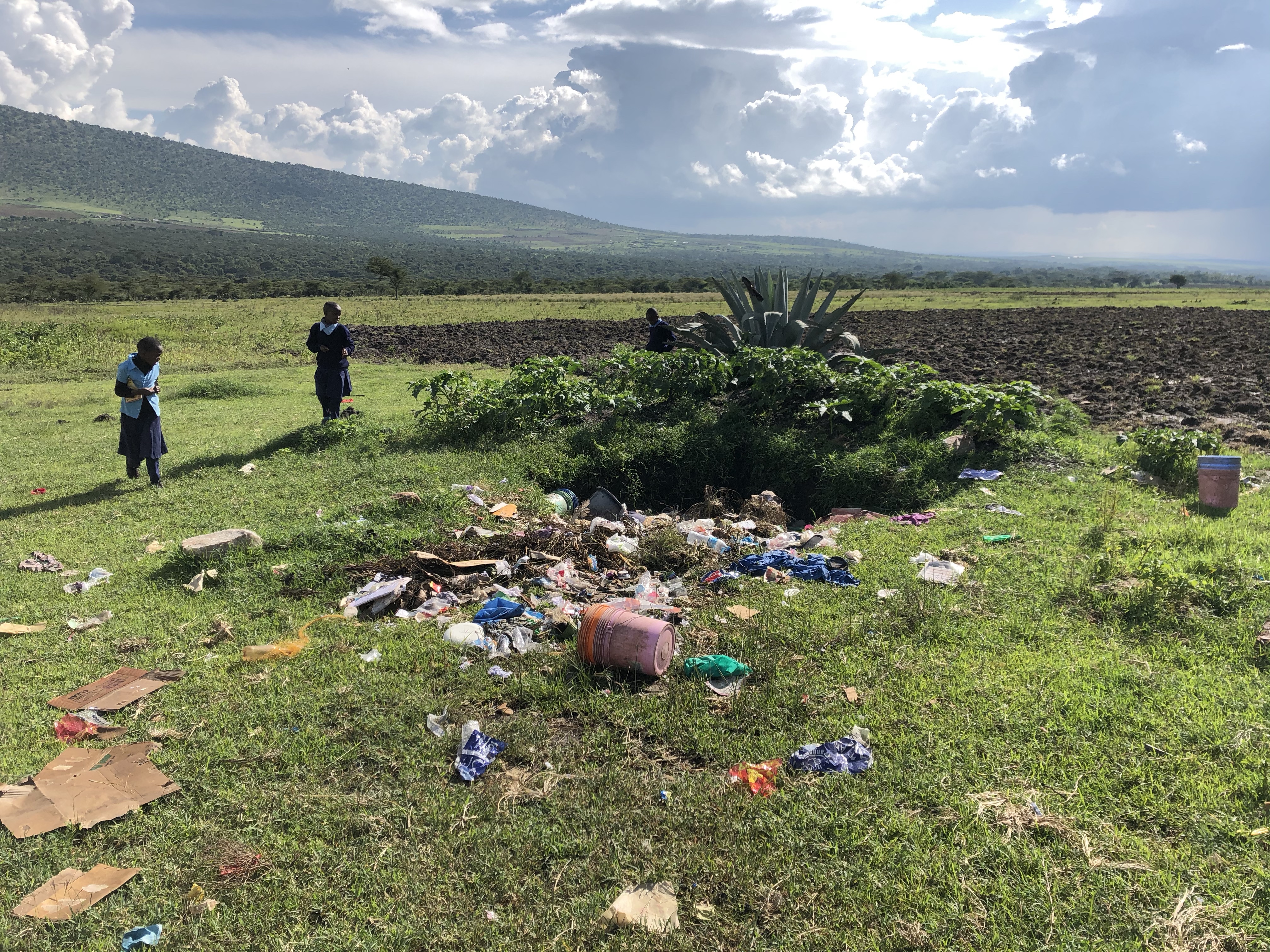 Und dann der Müll. Auch wenn Dennis meint, dass es hier im Vergleich zu vielen anderen Ländern auf der Welt sauber ist, liegt doch immer wieder Müll herum, sowohl in der Schule wie auch in Barakas Haus. Wenn man die Kinder in der Schule fragt, wo der „bin“ (Mülleimer) ist, führen sie dich zum Ende des Grundstücks, wo in einem flacheren Loch in der Erde der Müll gesammelt wird. Wenn das der einzige Mülleimer der Schule ist, kann man sich gut vorstellen, dass nicht viel Müll dort landet.