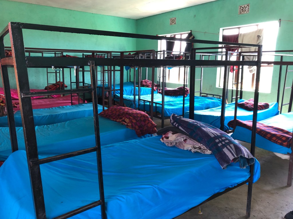 Da unsere Teachertätigkeit nicht so furchtbar effektiv ist, kehren wir nach der Pause (wieder mit Chaitee) nicht in die Klasse zurück, sondern treffen uns mit Dennis im Schlafraum der Jungen. Dort sieht es erfreulicherweise sehr viel ordentlicher und sauberer aus als am vergangenen Wochenende. Die Betten stehen in Reihe und sind gemacht, der Boden ist gefegt und die Kisten mit den persönlichen Sachen der Jungs stapeln sich an der Wand.