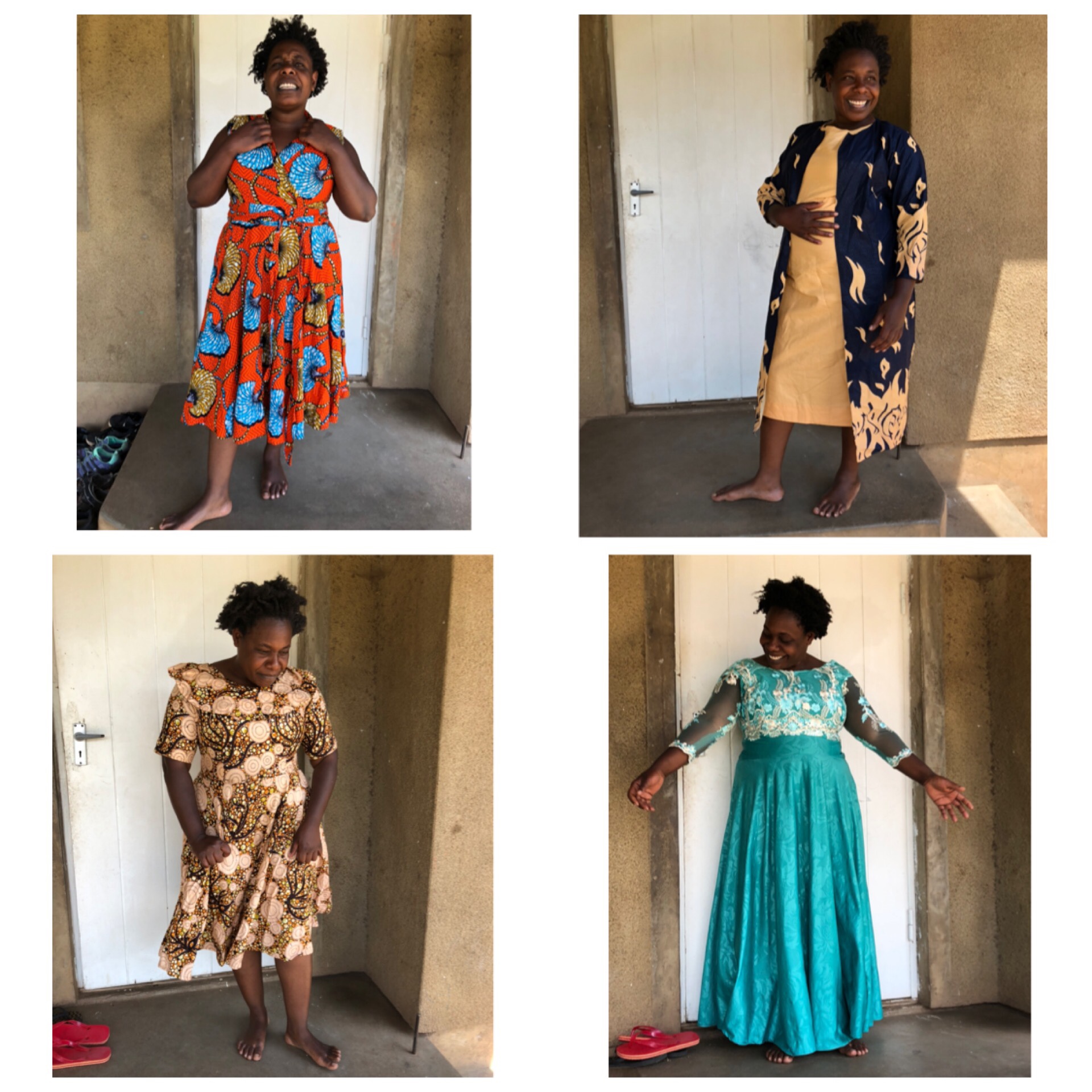 Wir „arbeiten“ ungefähr anderthalb Stunden, dann muss Baraka los. Nun schlägt Julianas Stunde. Schon seit den ersten Gesprächen über Kleider und Stoffe entstand die Idee einer Juliana Fashion Show 😀 Jetzt ist Zeit dafür und Juliana präsentiert uns einen Teil ihrer Roben. Die übrigens alle Margret genäht hat. Wir sind völlig aus dem Häuschen über diese Farben und ihre Art zu präsentieren. Juliana ist wirklich bildschön!