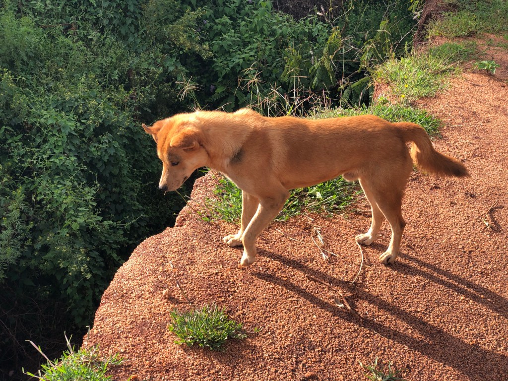 Irgendwann werfe ich einen Blick aus dem Fenster und sehe draußen unter einem Baum den Puppy liegen. Der Puppy ist vielleicht 8 Monate alt und eine Hündin namens Polis. Von uns allen wird sie aber nur Puppy genannt. Normalerweise ist sie angebunden, damit sie nicht weglaufen kann. Auf dem Hof leben noch zwei weitere Hunde, die Mutter von Polis und der Papa.
