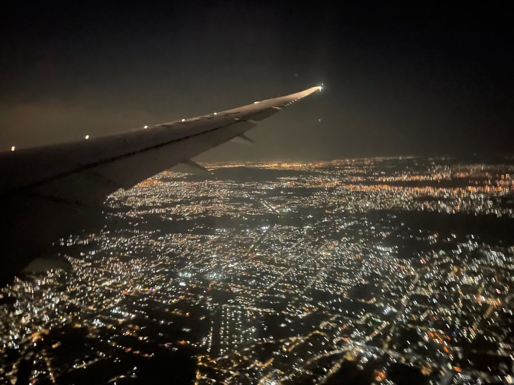 Am Flughafen Hannover („meinem“ Flughafen) gibt es einen liebevollen und fröhlichen Abschied durch einen Teil meiner Liebsten, dann bringt mich die AF 1839 (wie gut kann ich diese Flugnummern noch auswendig) nach Paris, wo ich nach einem dreistündigen Aufenthalt in eine Maschine der Aeromexico steige und durch die Nacht über Grönland, Kanada und die USA Mexiko entgegenfliege. Der Anflug auf Mexico City in den sehr frühen, noch dunklen Morgenstunden des 21. Märzes ist grandios. Ein glitzerndes, funkelndes Sternenmeer liegt unter mir. Wohin ich aus dem kleinen Fenster auch sehen kann – Lichter in allen Farben.