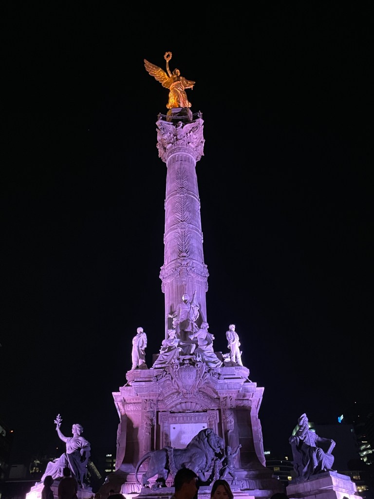 Schon nach wenigen Kilometern fahren wir am Parque de Chapultepec vorbei, dem größten Park des gesamten amerikanischen Kontinents! Am östlichen Rande des Parques thront auf einem felsigen Hügel das Castillo de Chapultepec über der Stadt, mit Blick auf die breite und prächtige Straße Reforma, die ins Zentrum führt. Schicke, schlanke Hochhäuser, elegante Geschäfte, Firmensitze und stattliche Bäume säumen diese Avenida, eine Champs d‘Elysee von Mexiko. Wir passieren auf der Reforma die auf einer hohen Säule golden strahlende Statue einer Siegesgöttin, die Columna de Independacion, auch El Angel genannt. Obwohl sie doch gar kein Engel sei, sondern eine Nike, wie Bibi immer wieder betont.
