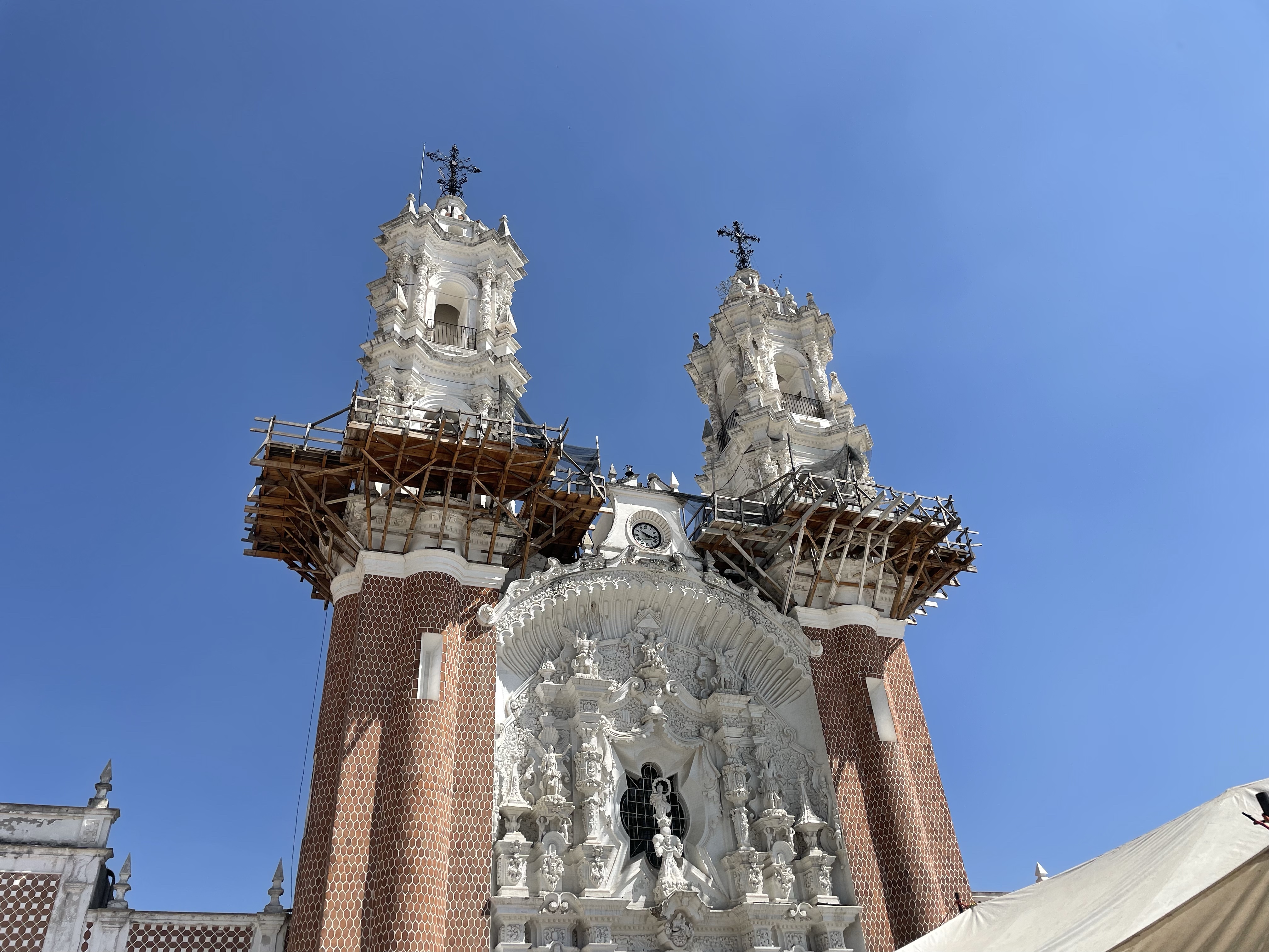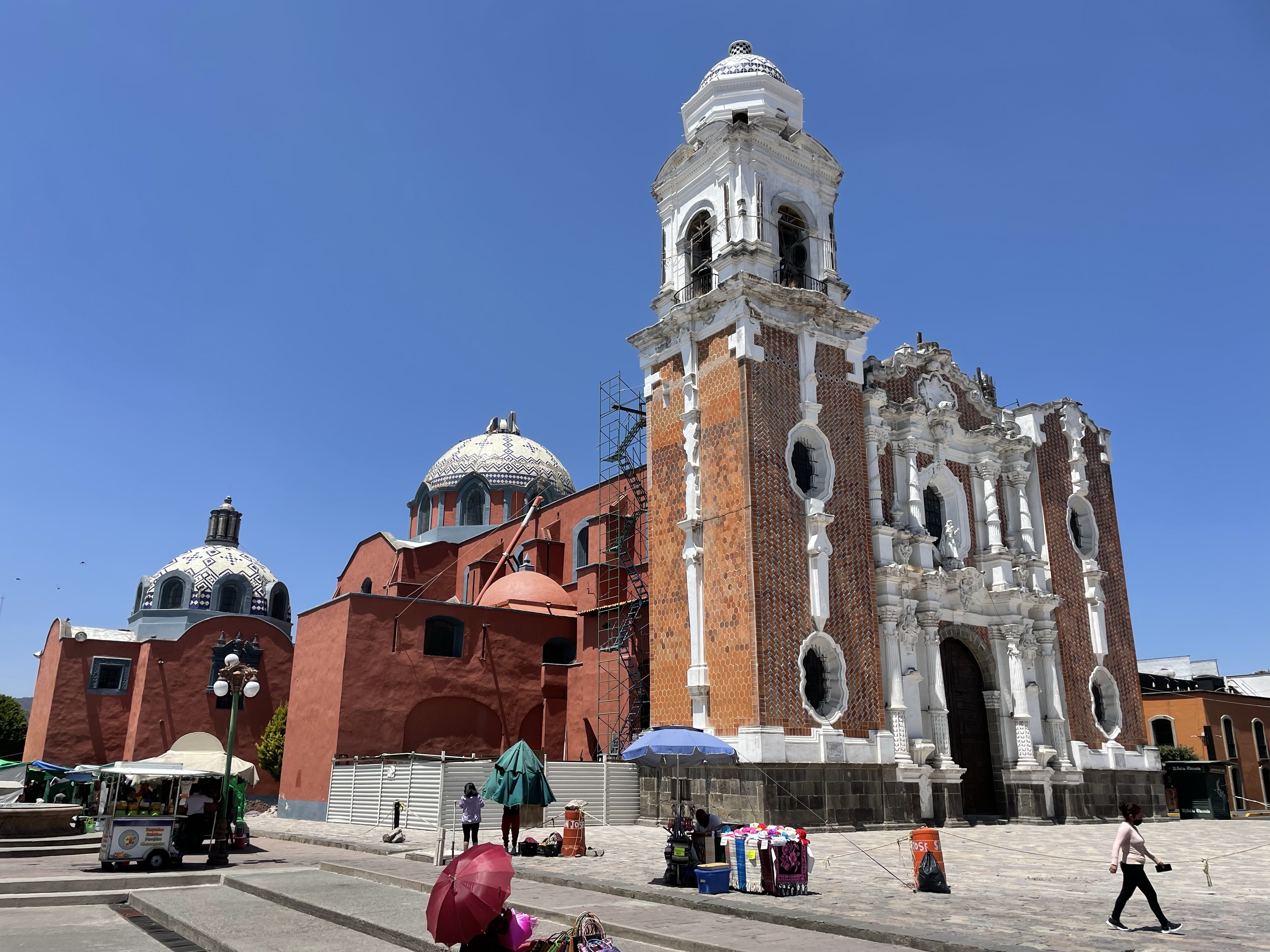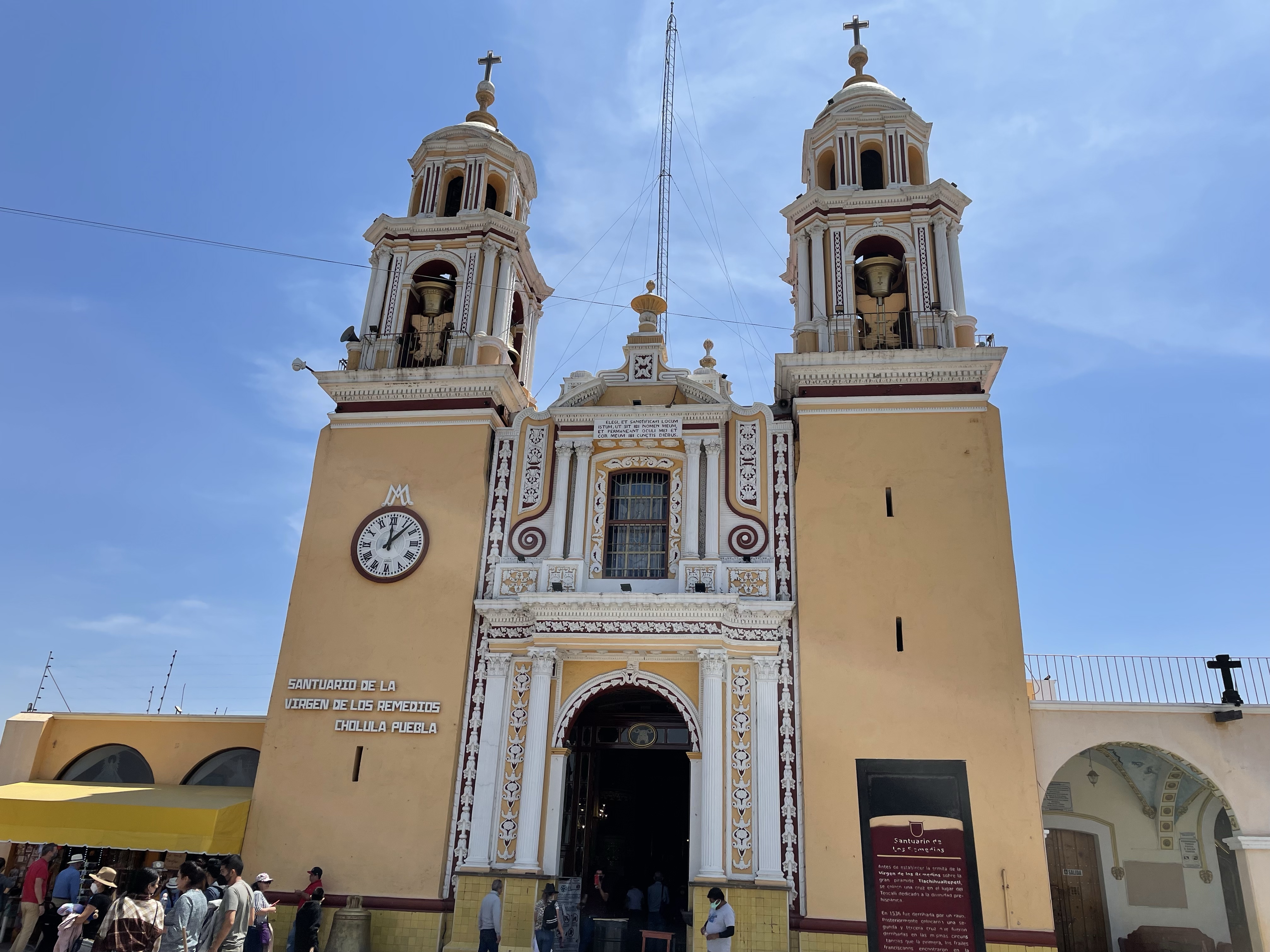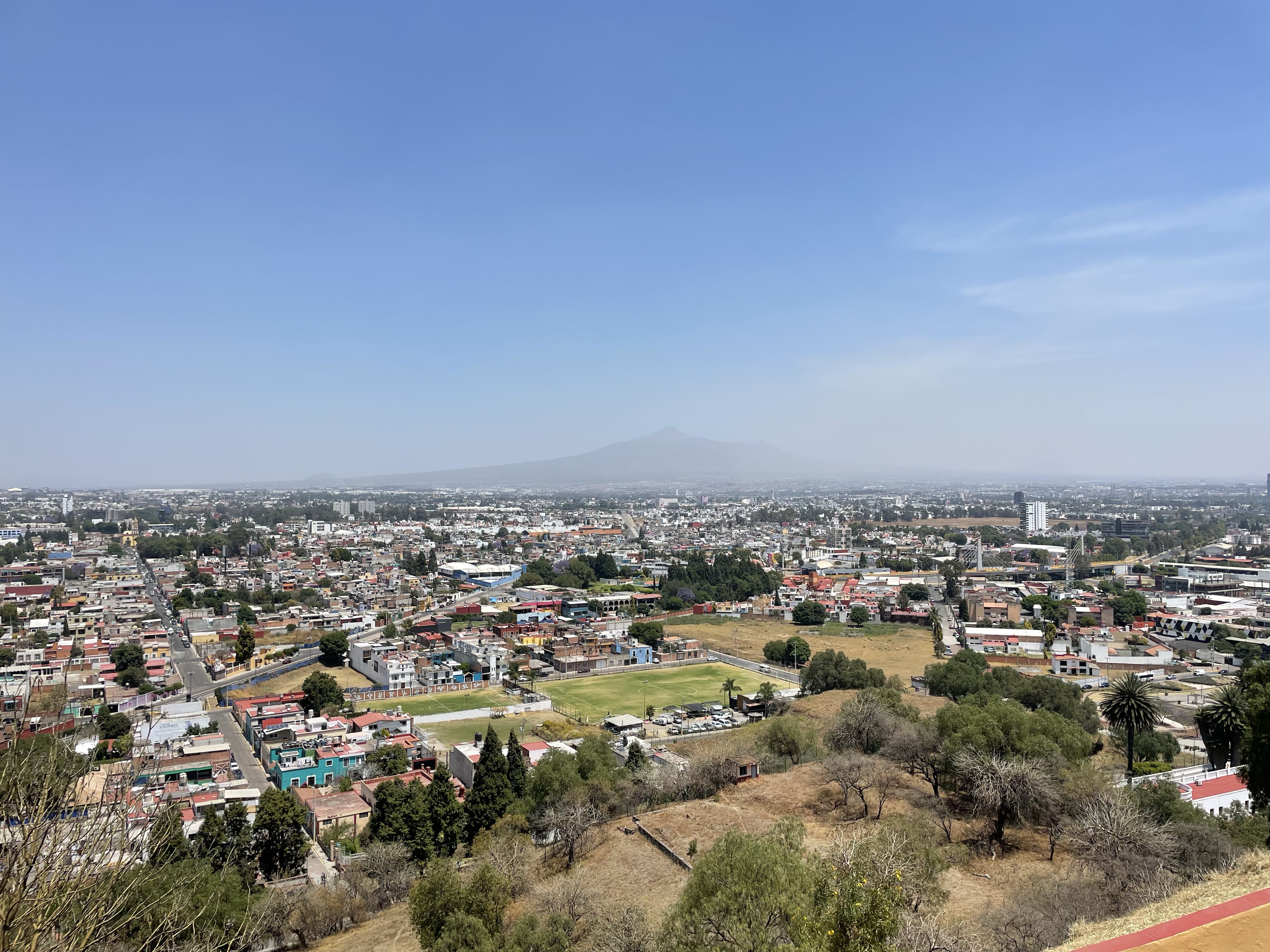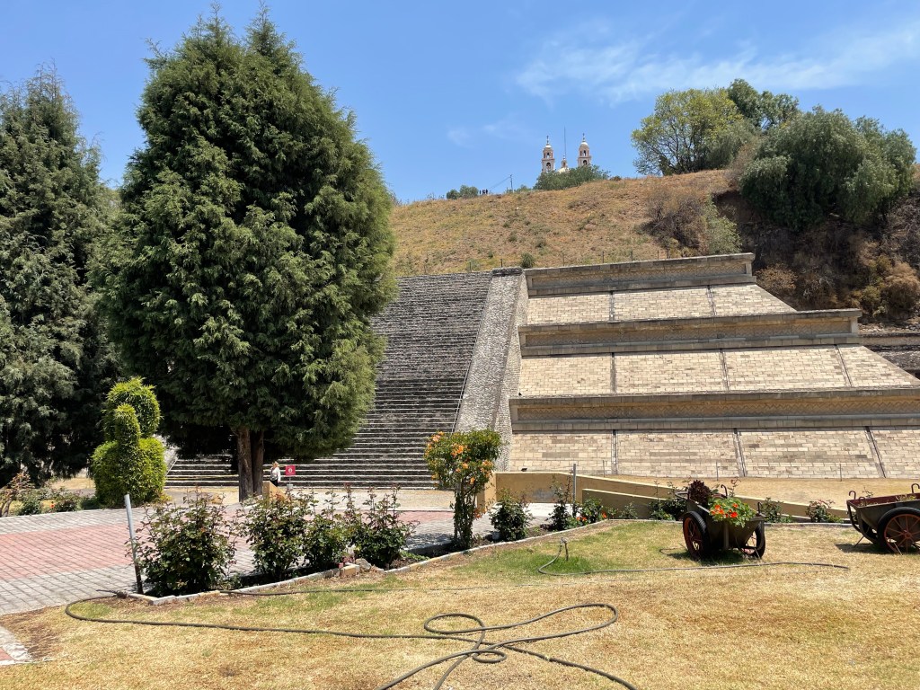 Unser erstes Ziel ist Cholula, ein sehr touristischer Vorort von Puebla. Dort befindet sich nämlich eine der größten Mayapyramiden, wohl weltweit die größte Pyramide überhaupt. Allerdings ist sie zerstört – ob dies Werk der Spanier war oder schon vorher passierte, ist nicht mehr bekannt. Von der einstigen Größe ist nur noch ein Erdhügel übrig, auf dem die Spanier nichts Besseres zu tun hatten, als … ja, na klar, eine Kirche zu bauen. Christentum übertrumpft den indianischen Glauben 😔 Das Santuario de Nuestra Señora de los Remedios ist – natürlich – Maria geweiht und ein Wallfahrtsort.